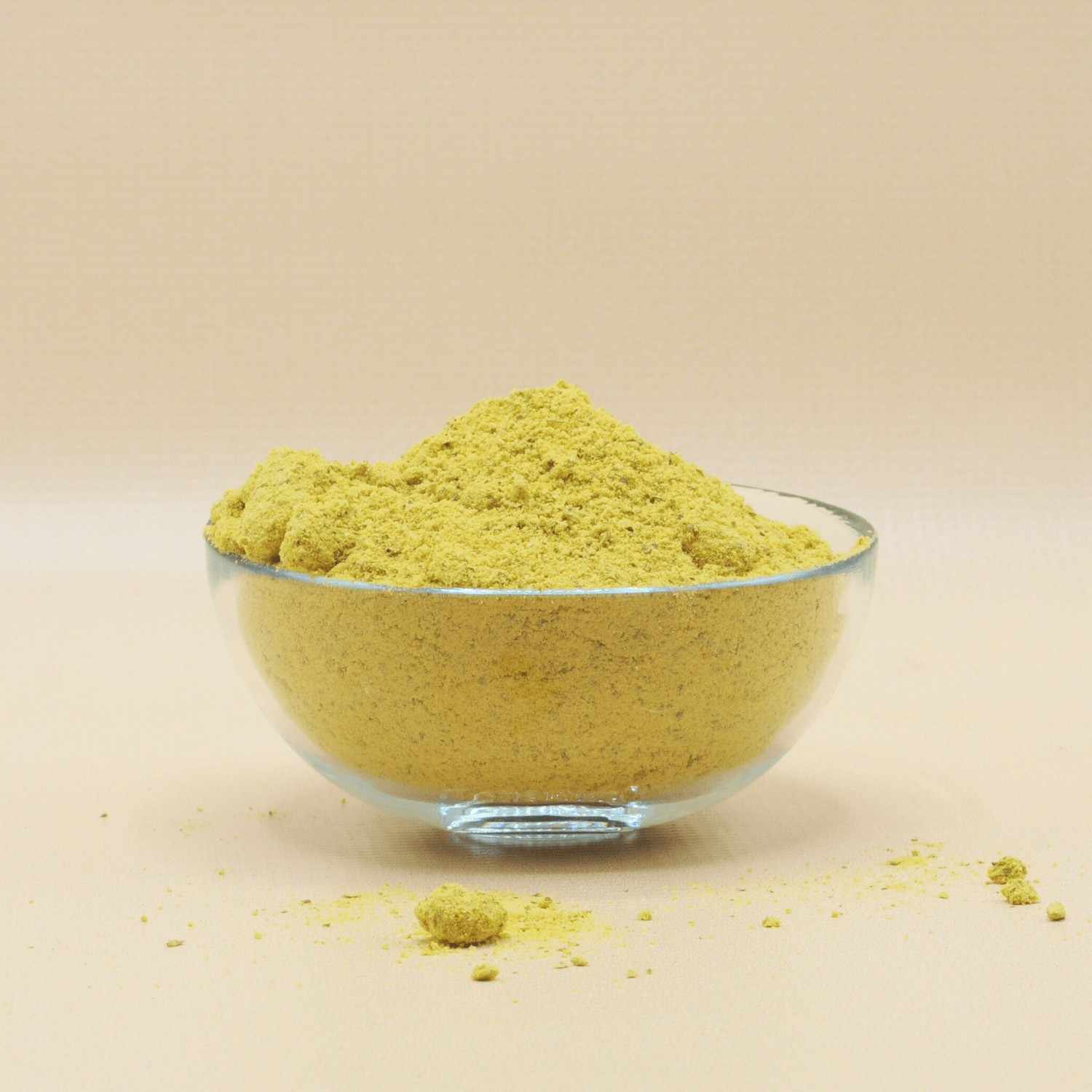 Ingredienser: havssalt, ekologiska potatisstärkelse, morötter, ekologisk lök, palsternacka, shiitakesvamp, pumpa, persilja, solros olja, gurkmeja, libbsticka